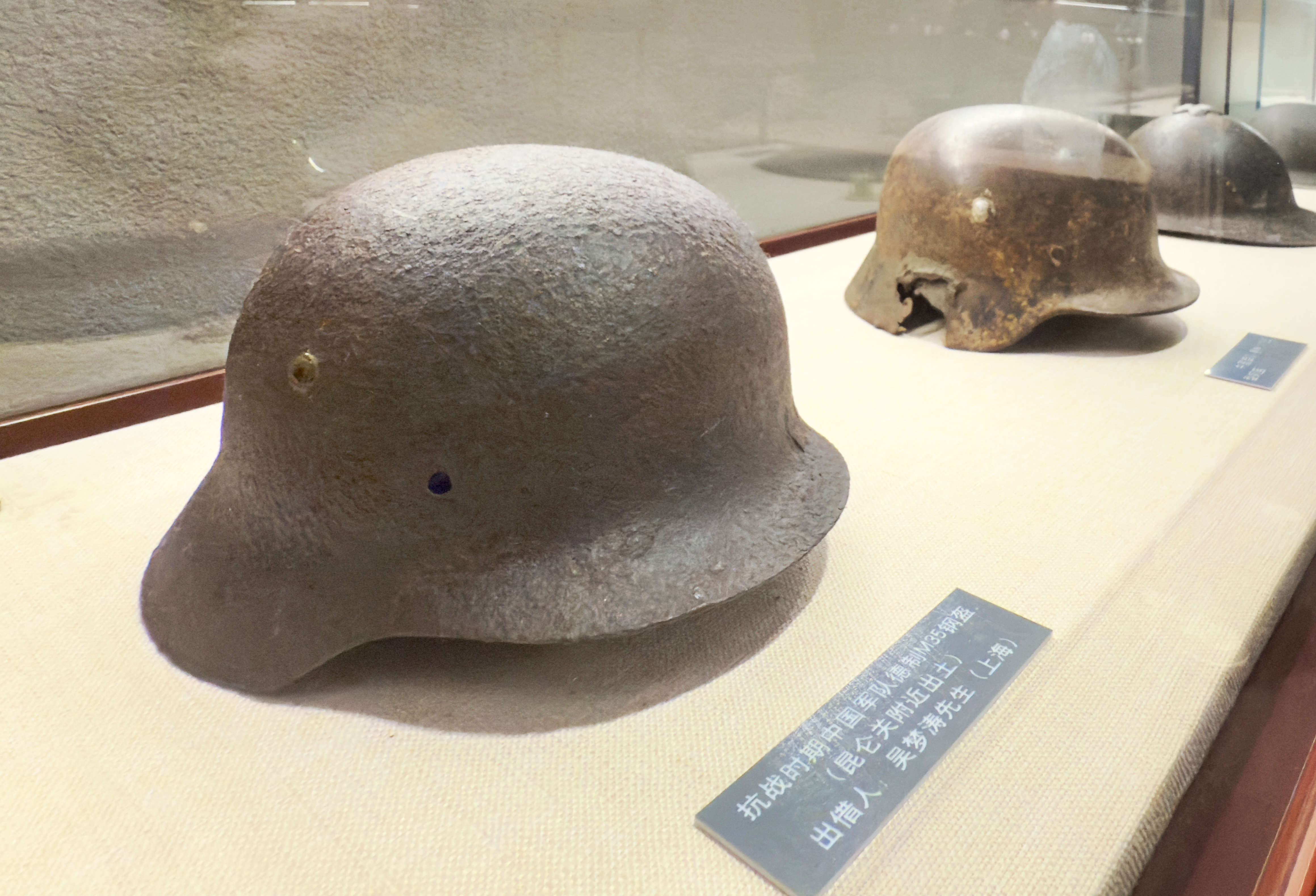 在昆仑关战役博物馆展出的抗战中国军队钢盔(昆仑关附近出土)。