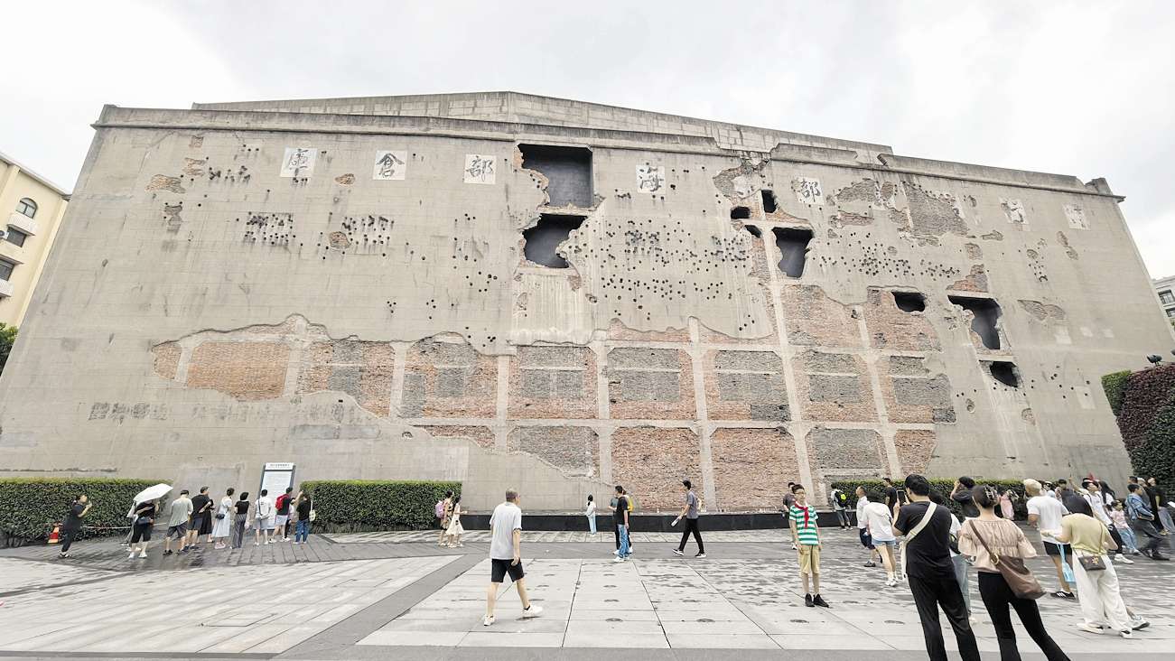 上海四行仓库抗战纪念馆布满弹孔的西墙。咸宁日报全媒体记者 刘震 摄