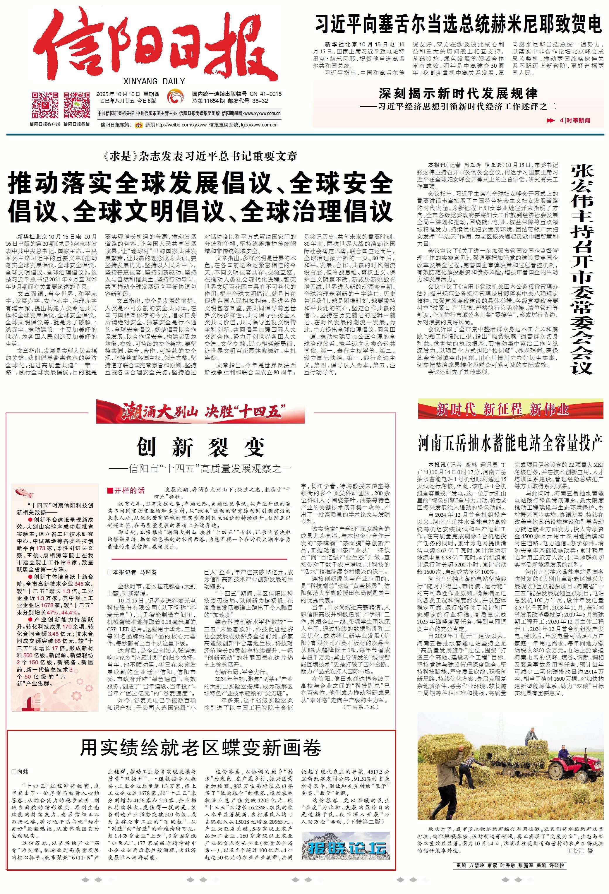 “十四五”征程即将收官,我市交出了一份厚重而鼓舞人心的答卷:从综合实力的稳步跃升,到城乡面貌的精彩蝶变,再到生态赋能的持续发力,老区信阳正以昂扬之姿,将习近平总书记“两个更好”殷殷嘱托,从宏伟蓝图变为生动现实。