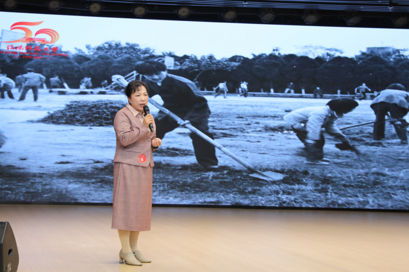 “校史盲盒”环节将比赛推向高潮。20张珍贵的老照片被随机抽取,选手即兴讲述。一段段尘封的记忆在讲述中苏醒,映照出学校50年来的拓荒足迹、师者守望与青春理想。