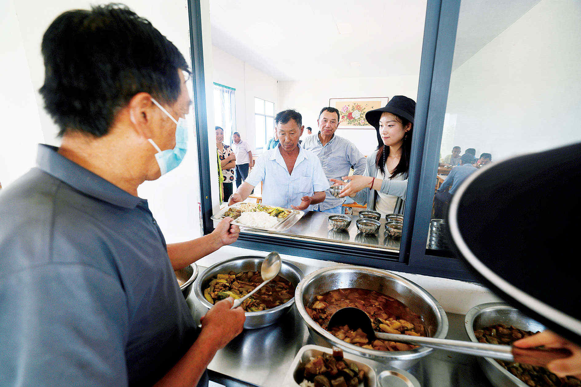 10月19日,临近中午,在浉河区老城街道义阳社区食堂,饭菜的香气扑面而来。