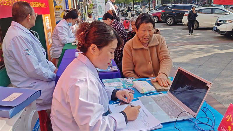 活动现场,量血压、骨密度检测、口腔检查、鼻腔检查等免费项目一字排开,来自相关领域的医护人员耐心细致地为前来咨询的老人答疑解惑,仔细检查他们的身体状况,并给出针对性的健康指导。