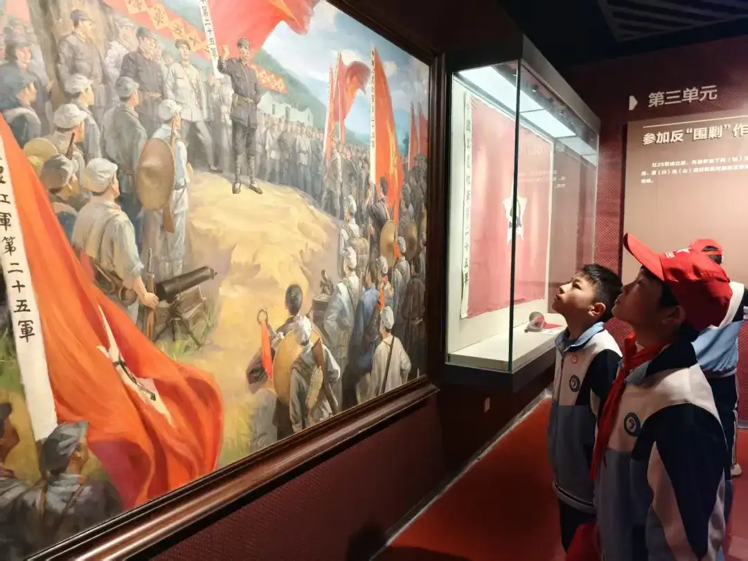随后,同学们走进红二十五军革命纪念馆。在讲解员的生动讲述中,红军战士翻山越岭、浴血奋战的场景仿佛就在眼前,先烈们为革命事业不惜牺牲一切的崇高精神深深触动着每一个孩子的心灵。