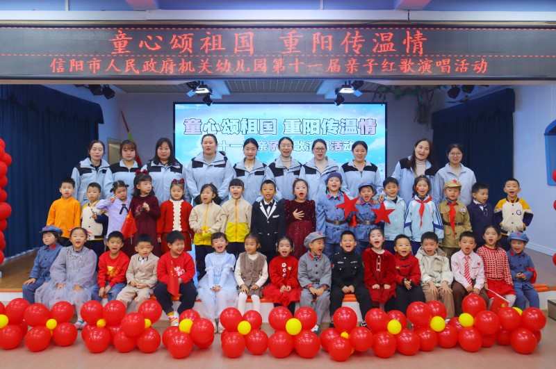 近日,信阳市人民政府机关幼儿园举办第十一届亲子红歌演唱活动。《歌唱祖国》《没有共产党就没有新中国》《红星闪闪》等一首首经典红歌依次唱响。孩子们用稚嫩纯真的嗓音,唱出对祖国最真挚的爱;长辈们则以饱含深情的演唱,重温激情岁月,传递信仰力量。