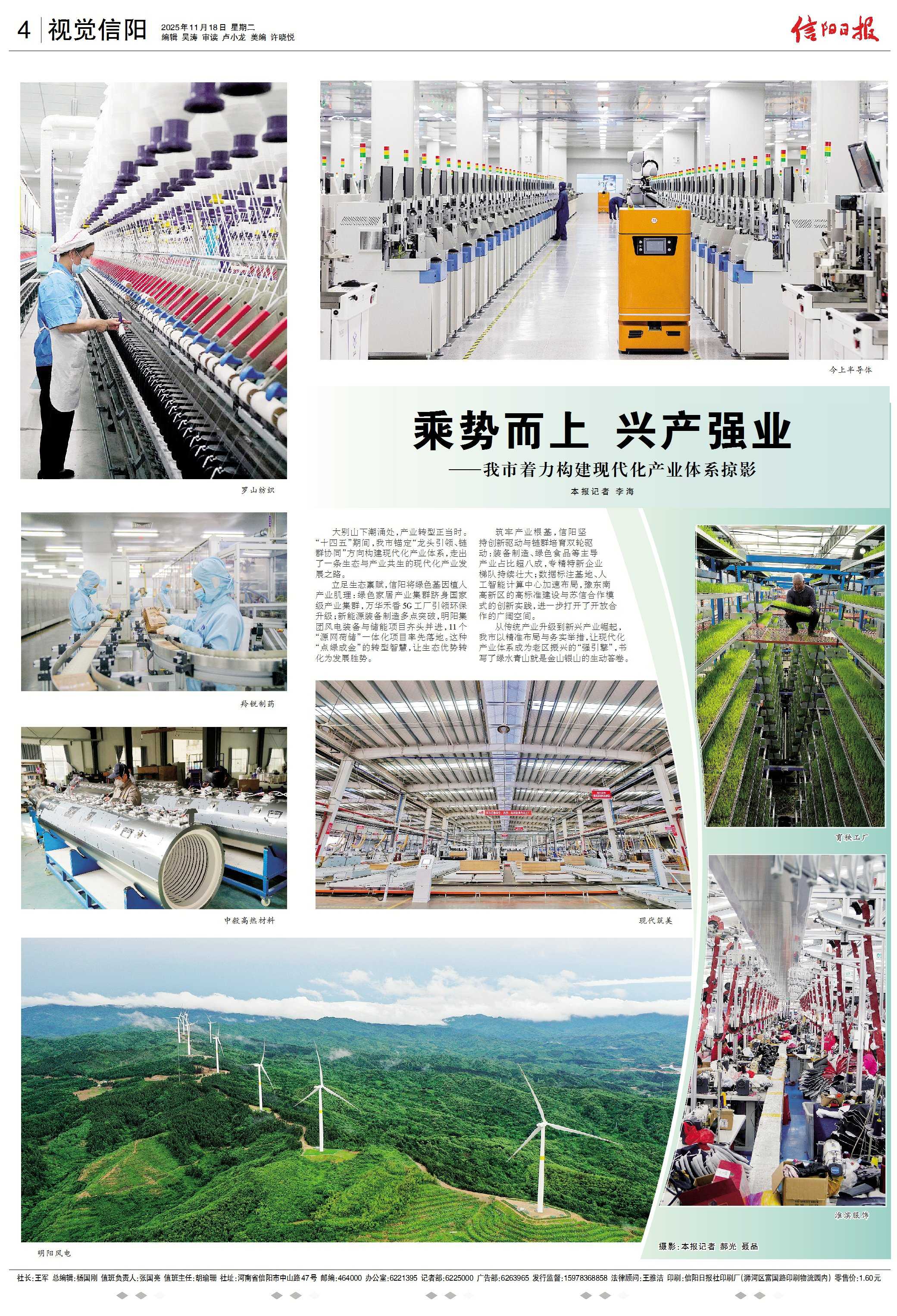 立足生态禀赋,信阳将绿色基因植入产业肌理:绿色家居产业集群跻身国家级产业集群,万华禾香5G工厂引领环保升级;新能源装备制造多点突破,明阳集团风电装备与储能项目齐头并进,11个“源网荷储”一体化项目率先落地。这种“点绿成金”的转型智慧,让生态优势转化为发展胜势。