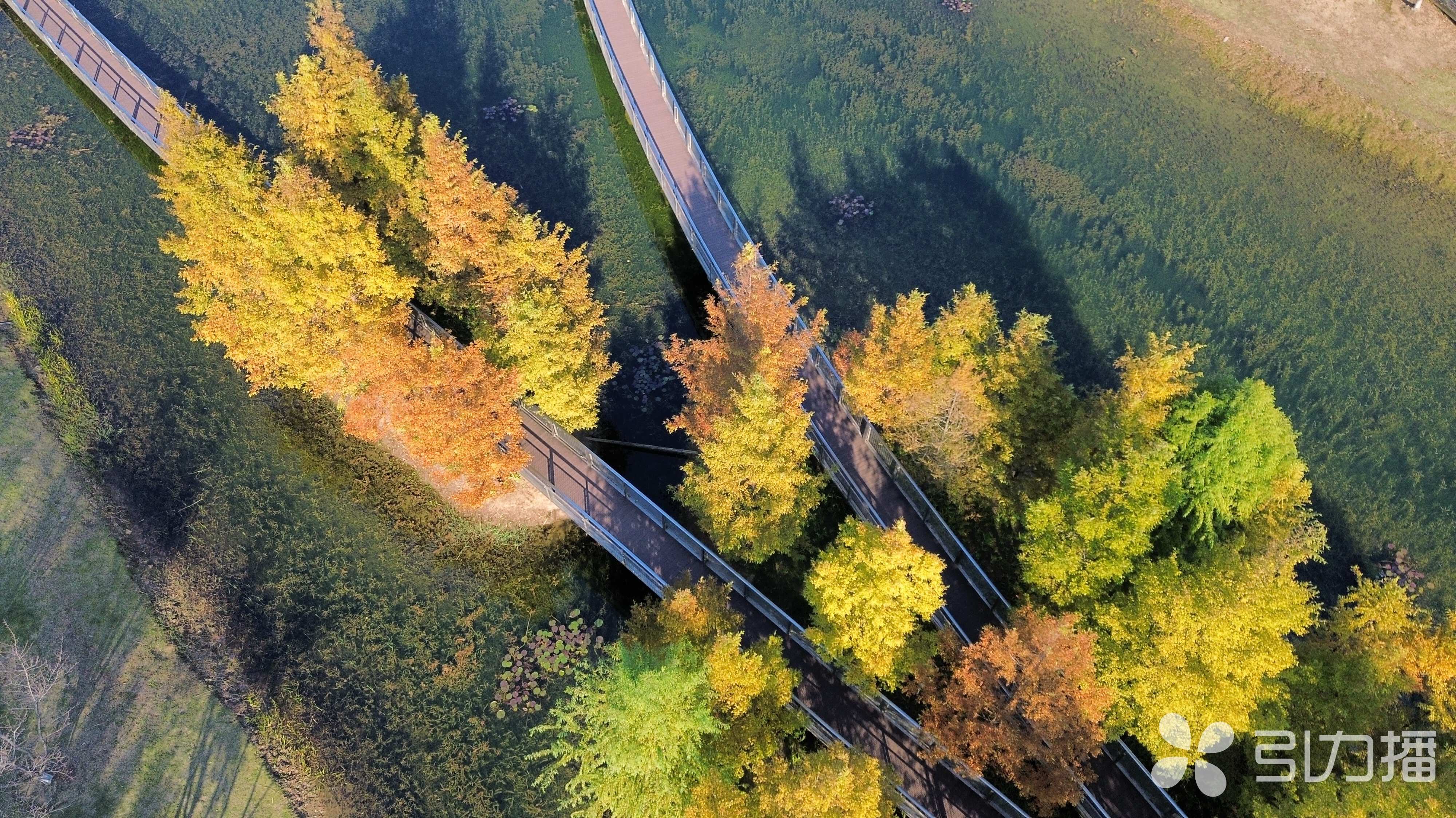 11月20日,苏州高新区科技城彩石湖公园秋色正浓。湖面如巨大调色盘,五彩树林与步道在湖面穿梭交错,眼下已是层林尽染,与岸边金黄银杏、火红枫叶相映成趣,构成一幅醉人的深秋画卷。(苏报融媒记者 杨海石 文/摄/摄制)