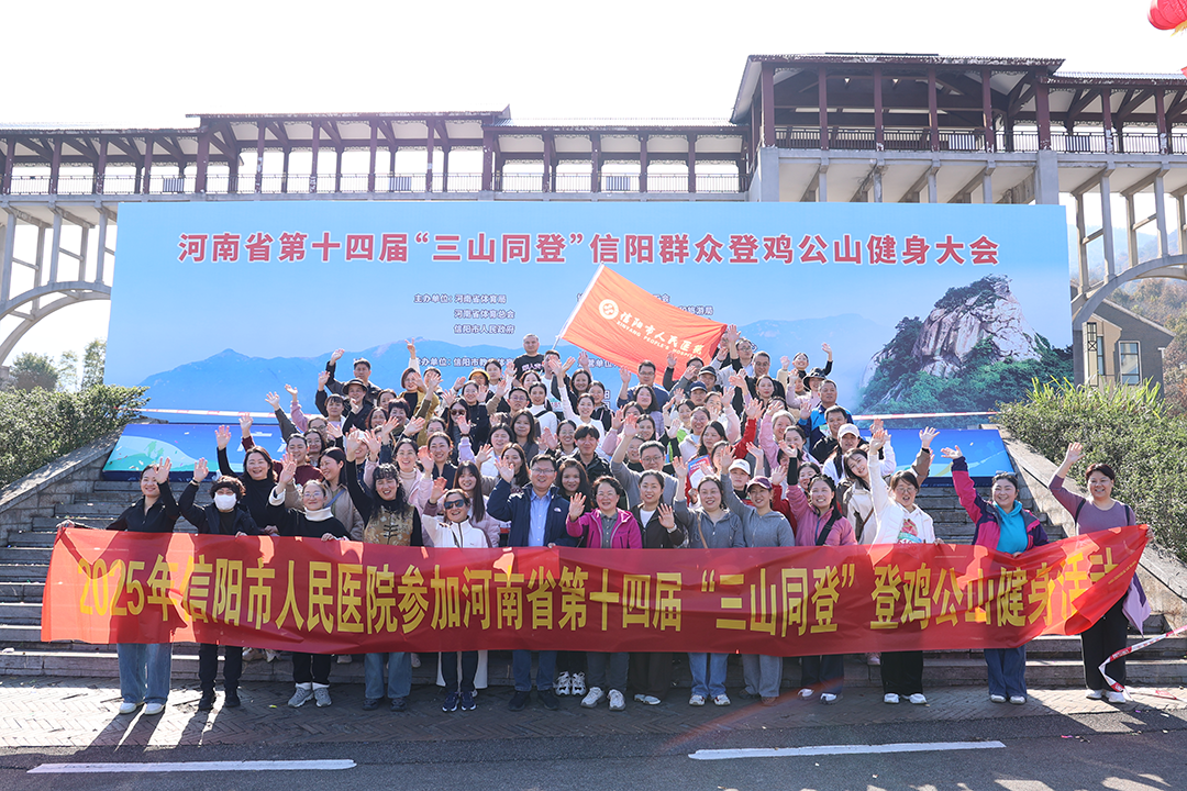 11月21日上午,河南省第十四届“三山同登”信阳群众登鸡公山健身大会开幕。为响应全民健身号召,进一步增强职工身体素质,信阳市人民医院党委书记朱云、院长王春红、工会主席程玲、副院长史川川带队,组织百余名职工参加了此次登山活动。