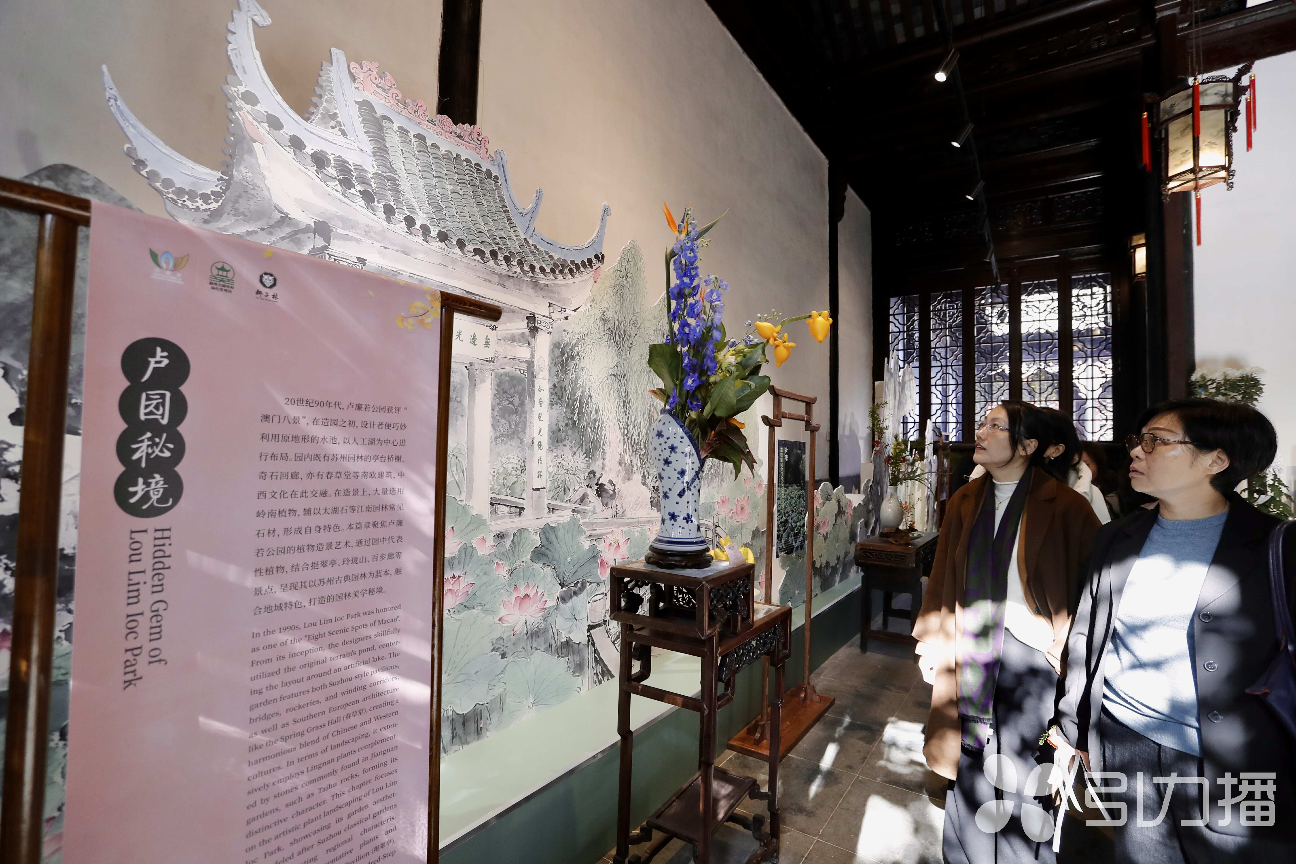 “城市林语”展区位于花篮厅,分屏短片《当“狮林”遇到“卢园”》以声画交织的方式,呈现两园在文化与自然层面的深度联结。开幕当天,花篮厅平台还上演了“江南小调遇见澳门民谣”音乐演出,《茉莉花》《太湖美》《七子之歌》《彩云追月》等经典曲目依次奏响,诠释“山水同脉”的主题内涵。