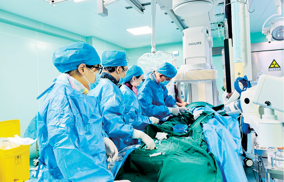面对困境,市中心医院引入国际先进的TAVR技术,为患者带来转机。该手术仅需通过大腿根部血管的微小穿刺点,沿导管将压缩的人工瓣膜精准输送至心脏病变部位并释放,从而替换病变瓣膜。整个过程无须开胸、心脏不停跳,具有创伤小、恢复快的特点,能显著降低手术风险,尤其适合高龄、高危患者。