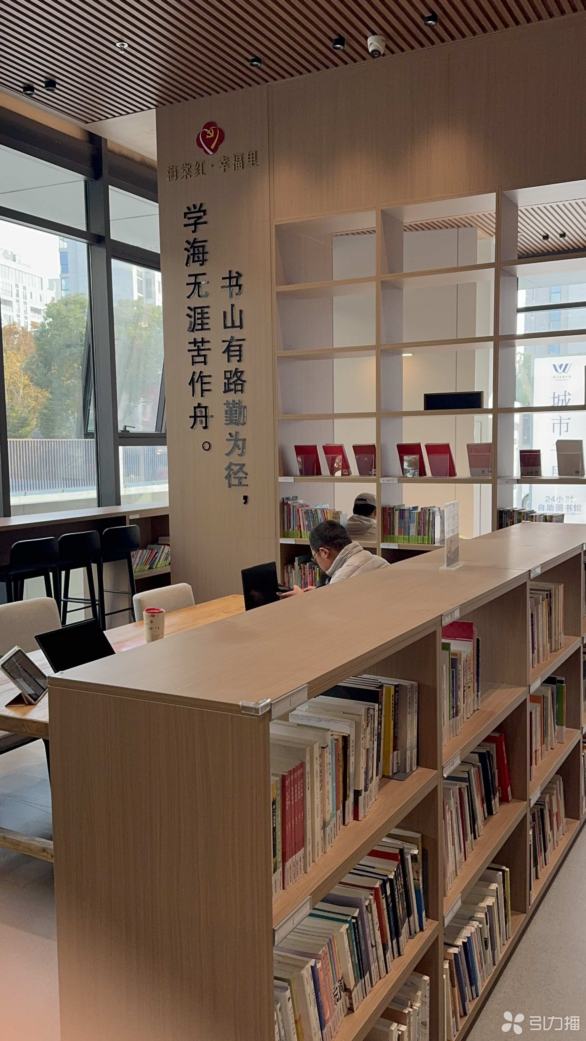 区别于传统的线下借阅点,湖逸社区城市书房在功能上进行了一项重要延伸——引入“网上借阅 社区投递”服务机制。书房入口处设有一组智能网借书柜。读者通过吴中区图书馆的线上平台检索并下单所需图书后,物流系统会将书籍配送至该网借书柜,读者收到取书码即可前往自提。这一机制打通了区图书馆总馆海量馆藏与社区微型空间之间的物流壁垒,使得物理空间有限的城市书房能够通过云端链接,实际上承担起图书中转站的职能。目前,该书房与吴中区图书馆郭巷分馆、湖景花园24小时自助图书馆已在郭巷街道范围内形成点位互补的阅读服务网络。
