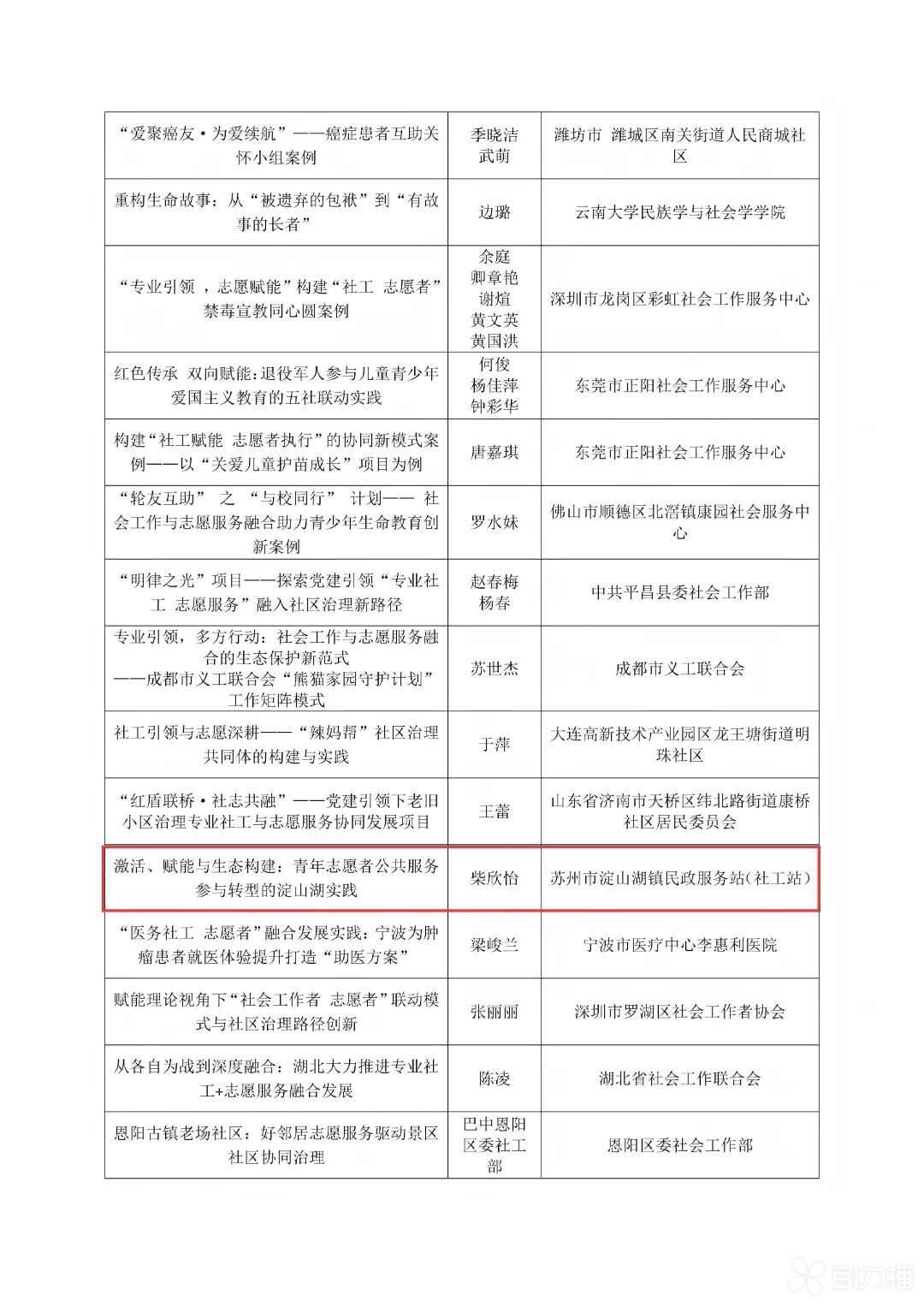 入选名单。昆山市民政局供图