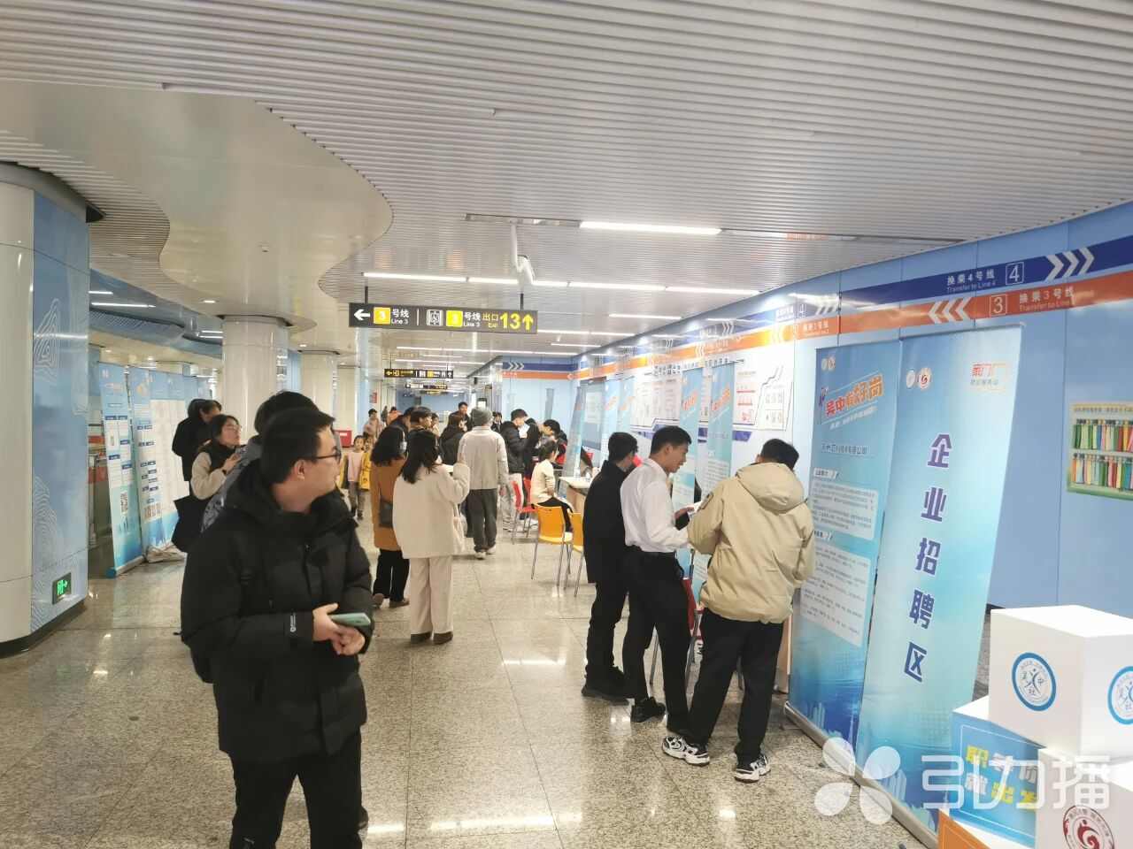 下午晚高峰时段的宝带路站内,招聘对接区、政策宣传区、公益服务区一字排开,人气十足,成为一道温暖的“民生风景线”。招聘对接区里,汇川技术、华成集团等7家优质企业带来制造、服务、技术等多领域热门岗位,“吴中有好岗”展示墙清晰罗列岗位信息,“flash offer”自助求职区支持扫码即时投递简历,让“路过式求职”成为现实。