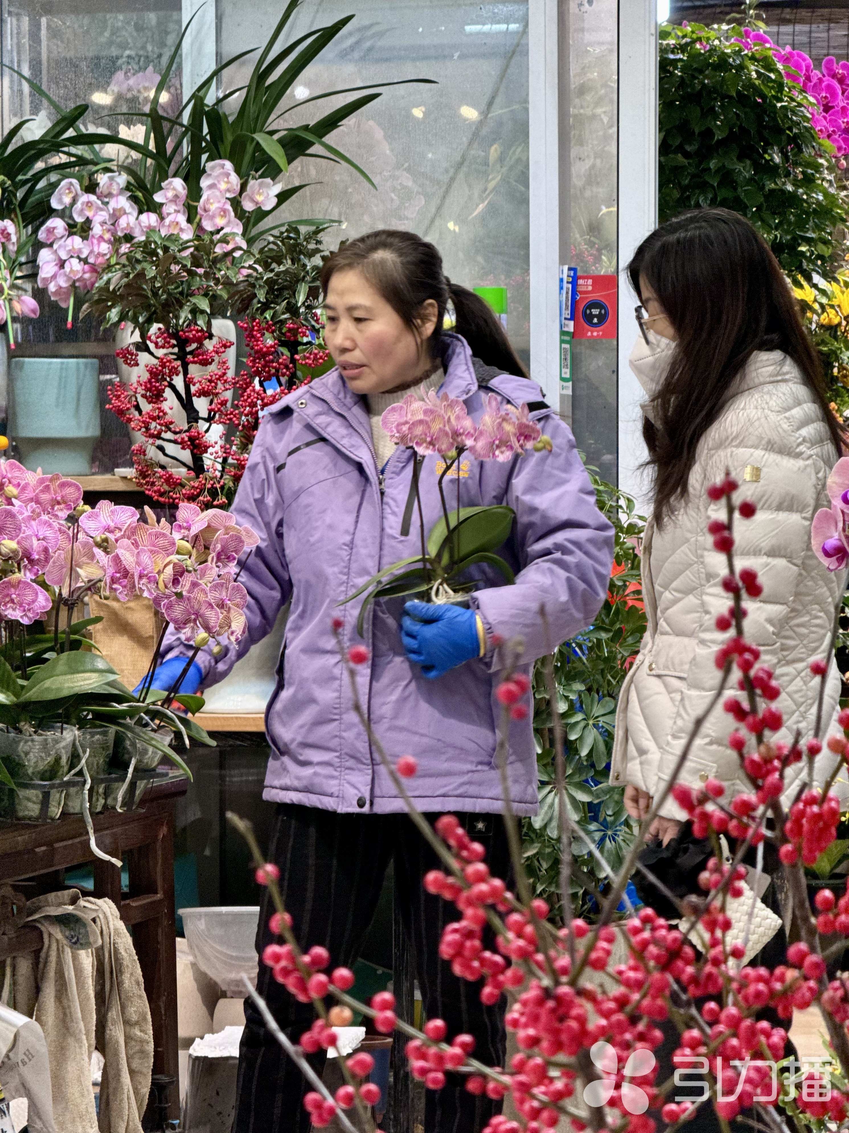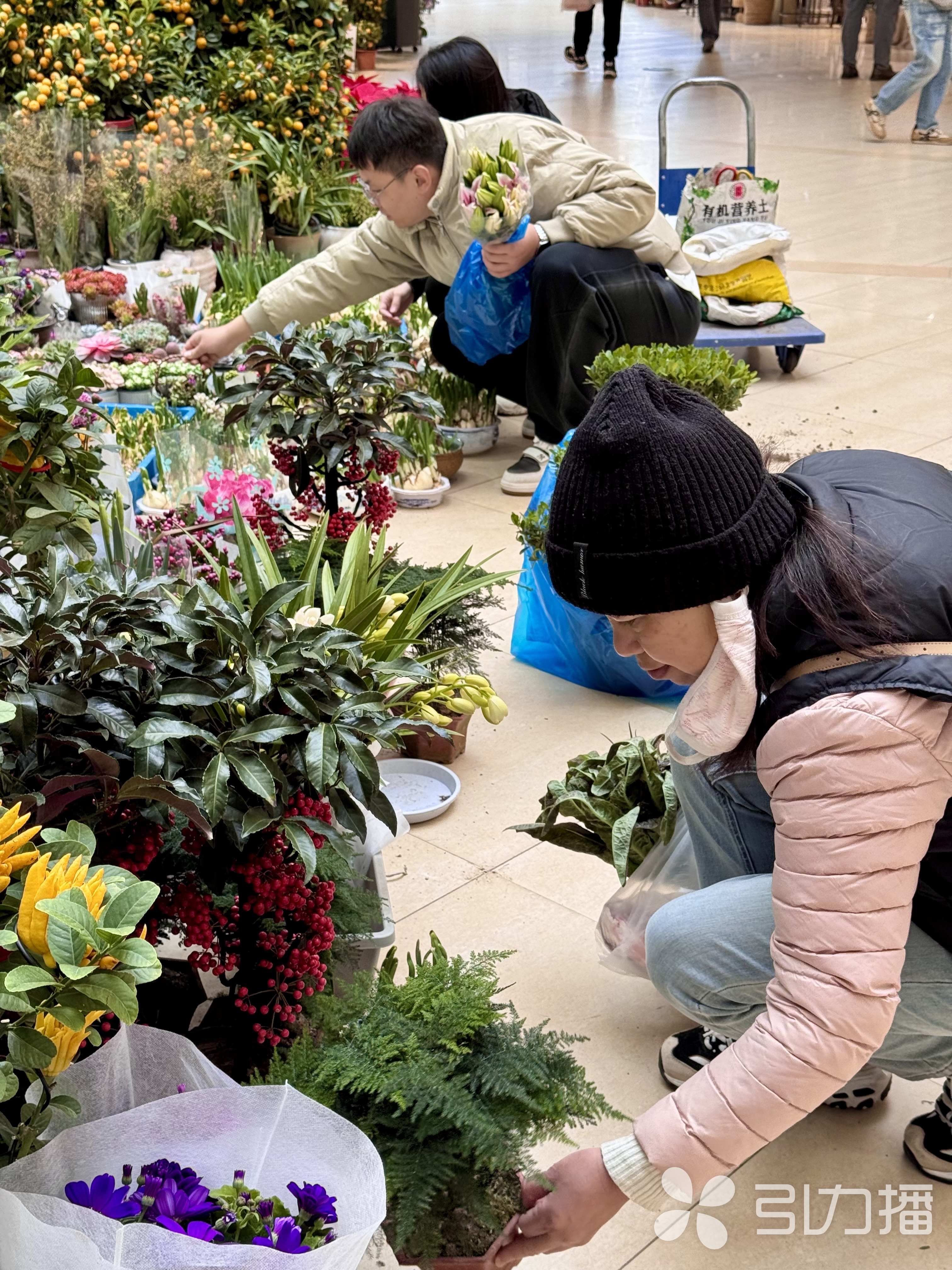 12月25日,市民在花卉中心挑选年宵花,市场一片忙碌景象。随着2026年元旦、春节临近,年宵花市逐步进入销售旺季。在苏南花卉中心,选购花卉的市民络绎不绝,一派红火景象。