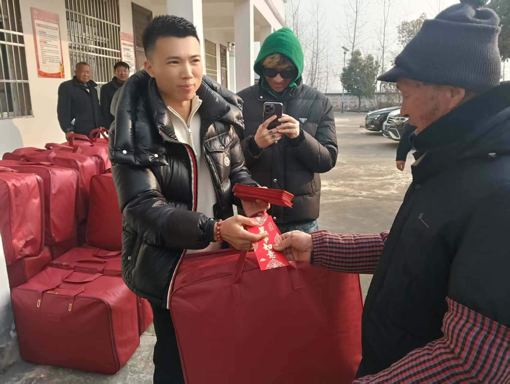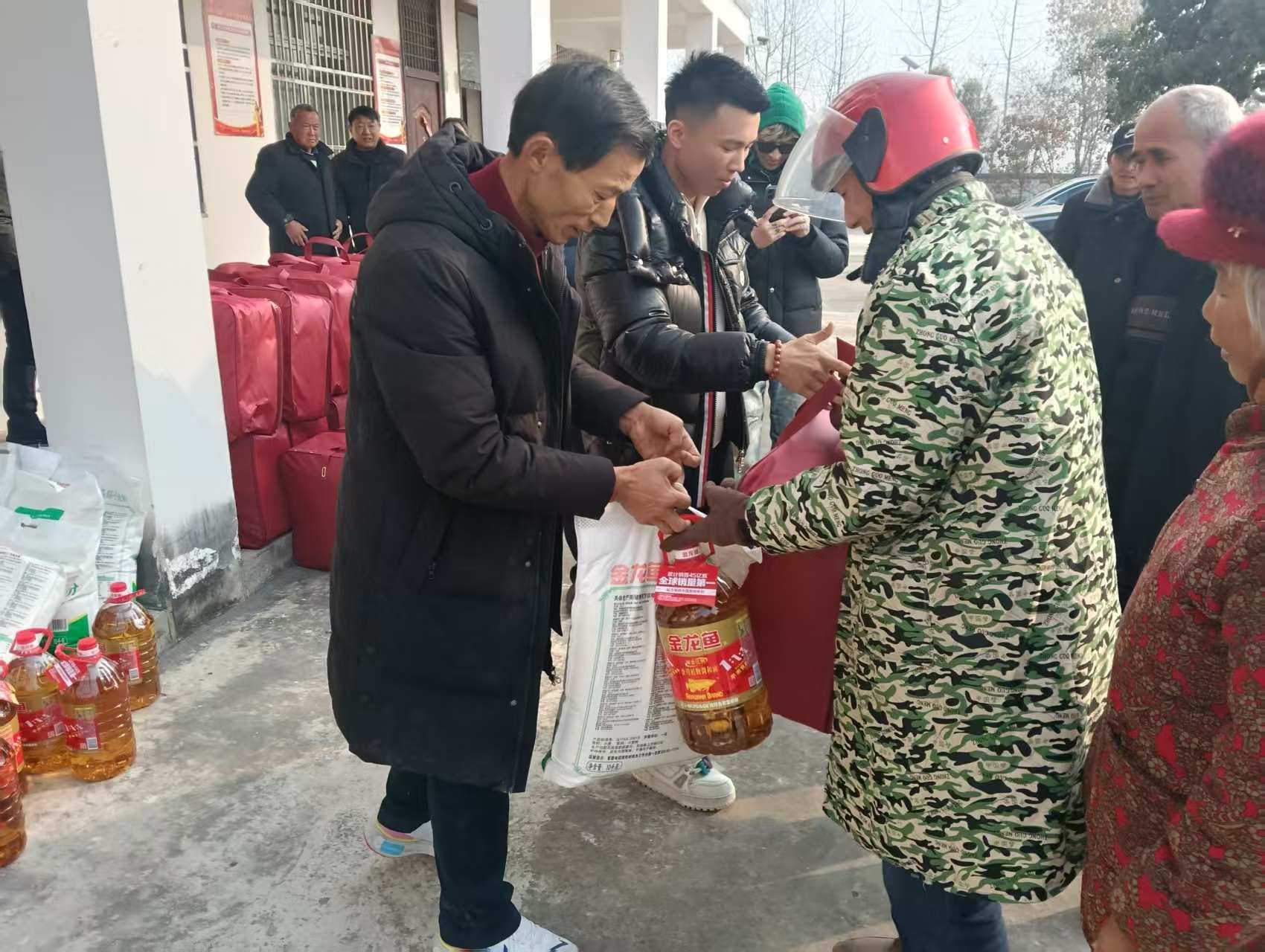 “快过年了,孙老板给了俺们买来了吃的、用的,还有红包,这孩子真是个好心人啊。”12月30日,固始县徐集镇花棚村党群服务中心院子里,该村20多位特困老人从孙克辉手中接过棉被、面粉、食用油和红包时,个个连声致谢。