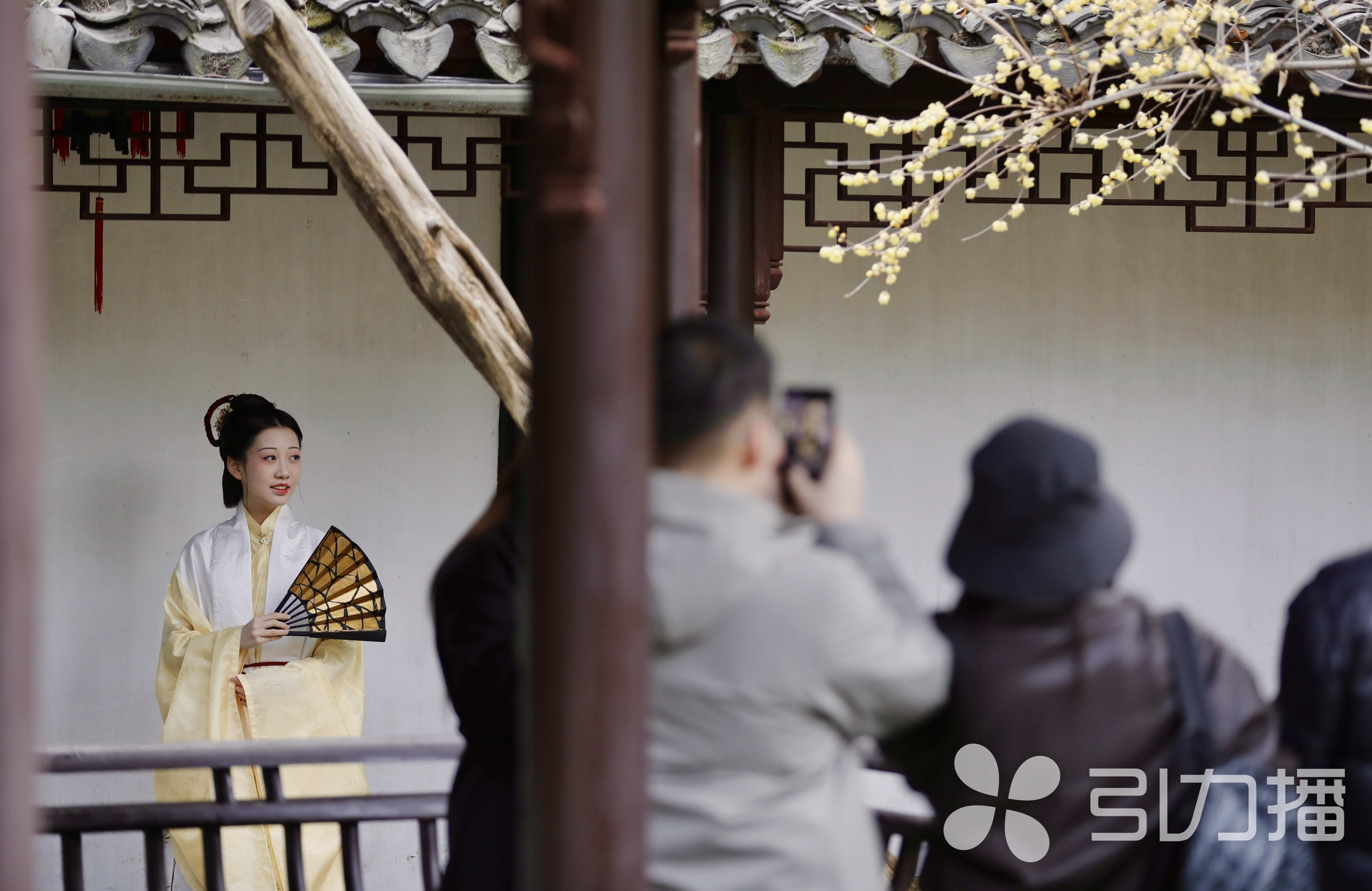 1月12日,游客在留园内观赏,拍摄盛放的蜡梅花。近日,苏州古典园林内的蜡梅迎寒盛放,幽香袭人。在留园、沧浪亭、狮子林、艺圃等园林中,鹅黄色的蜡梅花点缀于亭台楼阁、假山水榭之间,为冬日园林增添亮色与生机,吸引了众多游客、摄影爱好者驻足观赏、拍摄。人们流连于花下,感受着“踏雪寻梅”的古典意境,领略着世界文化遗产在冬季的独特韵味。(苏报融媒记者 张健/文/摄/摄制)