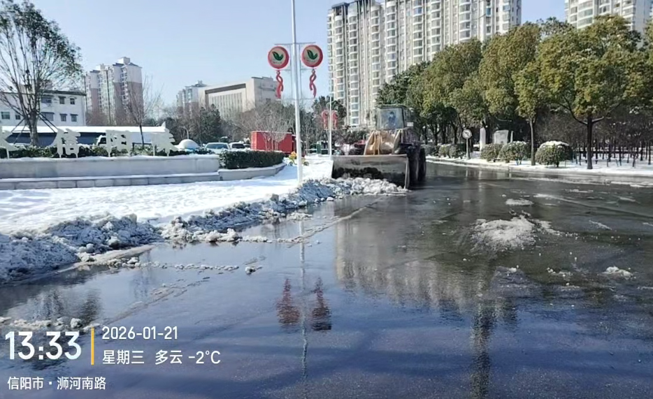 聚焦旅客出行保障,市城市管理局车站事务中心对信阳站、信阳东站站前广场及进出站通道、换乘区域进行全面清雪除冰,同步排查整治路面防滑隐患,以干净整洁、安全有序的环境,为出行旅客保驾护航。