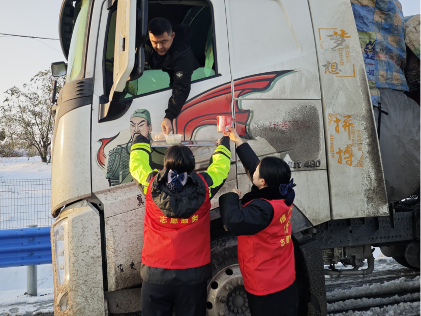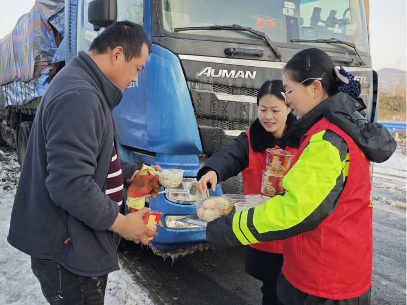 “大哥,需要就餐不?我们有泡面、鸡蛋、饺子!”山西货车司机裴大哥蜷缩在驾驶室里,正为滞留的窘境发愁,窗外传来的温柔问询,瞬间驱散了周身寒意。抬眼望去,仙居高速收费站的工作人员,正端着热气腾腾的餐食,穿梭在车流之间。