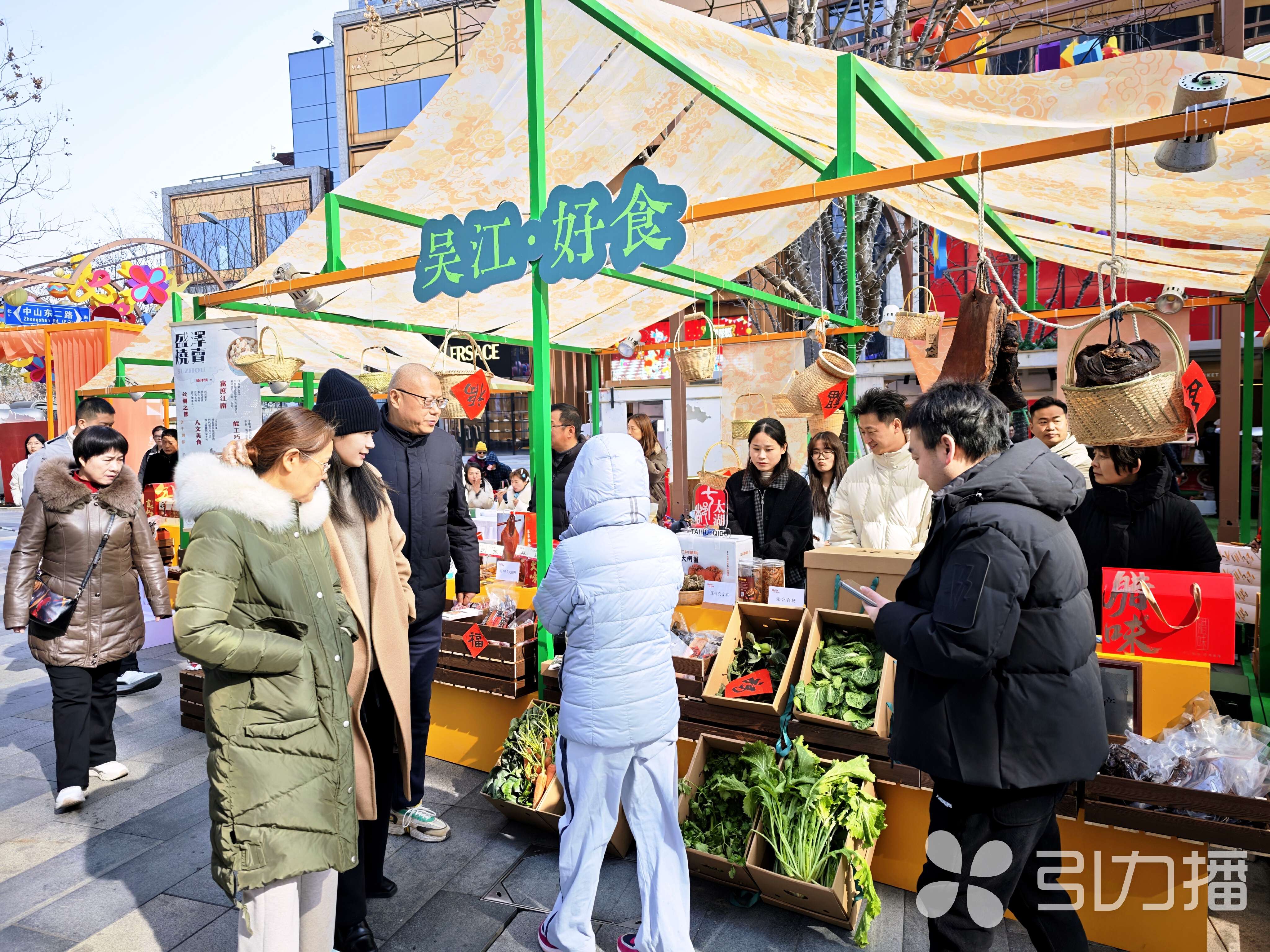 1月24日,在“吴韵年味·江等你来”吴江(上海)时尚生活新春推介会会场外,一场特色新春好物展同步启幕——吴江组织了全区58家市场主体携带310种各类“年货”来上海“走亲戚”,向上海市民展示来自江南鱼米之乡的好物、好玩和好味道,在黄浦江边展开一幅可触、可感、可尝的立体江南画卷。