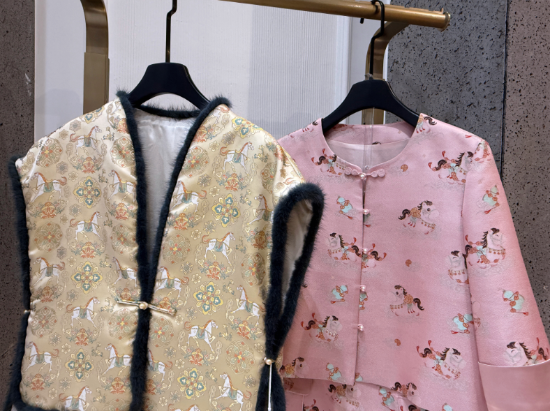 “新年穿新中式,还带着马年的吉祥寓意,既好看又有纪念意义。”正在挑选的“95后”市民陈瑶说,可爱白马与花卉的混搭设计让她一眼心动,果断入手了一套新年穿搭。