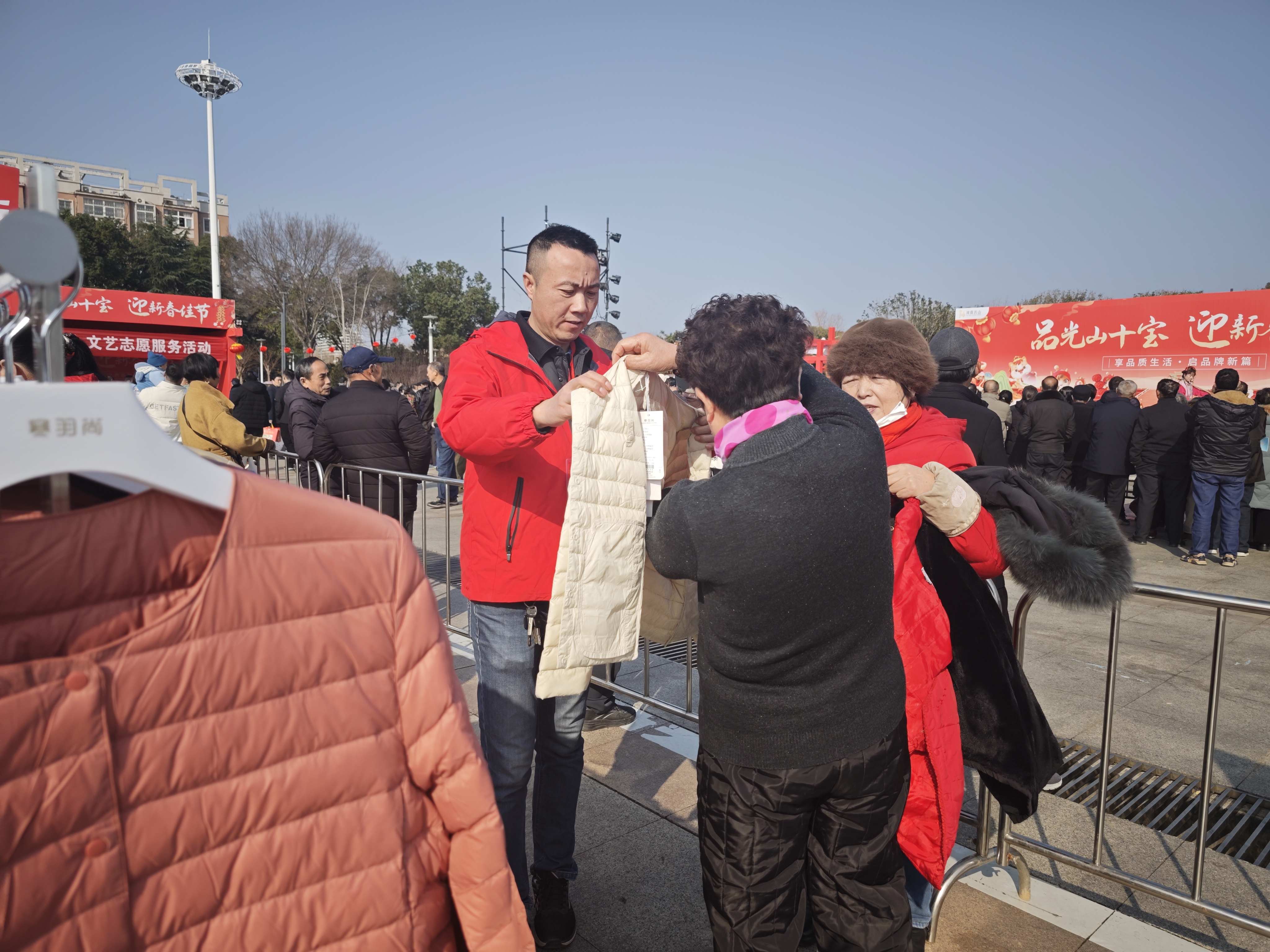 广场上,羽绒服展区最是简洁,但“全场五折”的招牌实打实地吸引了群众的目光。“我们深耕服装行业多年,材料、做工都经得起群众检验,此次以五折价格回馈广大父老乡亲,是我们作为光山企业的荣幸。” “寒羽尚”羽绒服展区负责人骄傲地说。