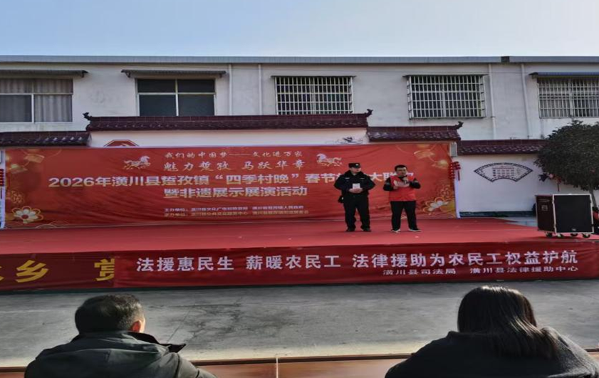 2月11日,潢川县司法局联合县文化广电和旅游局依托踅孜镇春节联欢晚会平台,举办法治文艺演出活动,把法治宣传融入新春文化生活,让群众在年味中感受法治温度,为基层群众送上一场“文化味+法治味”的新春盛宴。