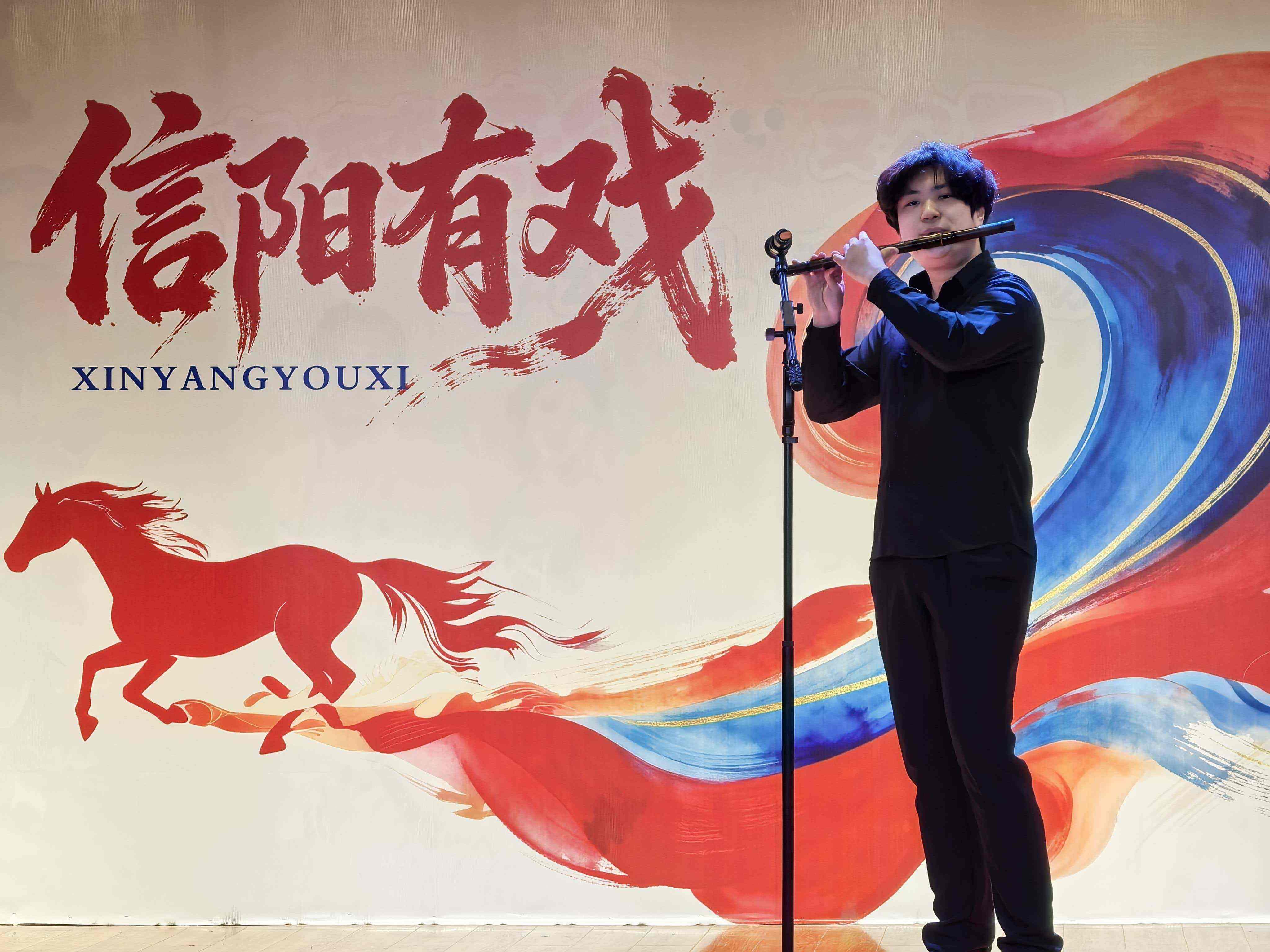 本次音乐会节目编排别出心裁,兼具艺术高度与地方特色。演出在经典与流行的交融中拉开序幕,信阳师范大学青年教师张锦锋带来的歌曲《我的太阳》与《等待》,展现了学院派的扎实唱功,赢得现场热烈掌声。随后,就读于中国音乐学院本科二年级的郭宇扬献上笛子独奏《沂蒙山歌》,以清越笛声展现了年轻一代演奏家的蓬勃朝气。