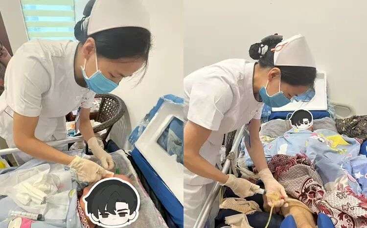 进屋后,蔡娇娇轻声安抚老人,随即开始操作:铺巾、消毒、更换尿管,每个步骤都轻柔而稳健。她不时观察老人的表情,与其交谈以缓解紧张。操作顺利完成后,她又耐心向孙奶奶讲解日常护理要点,并留下自己的联系方式:“有任何问题,随时打我电话。”