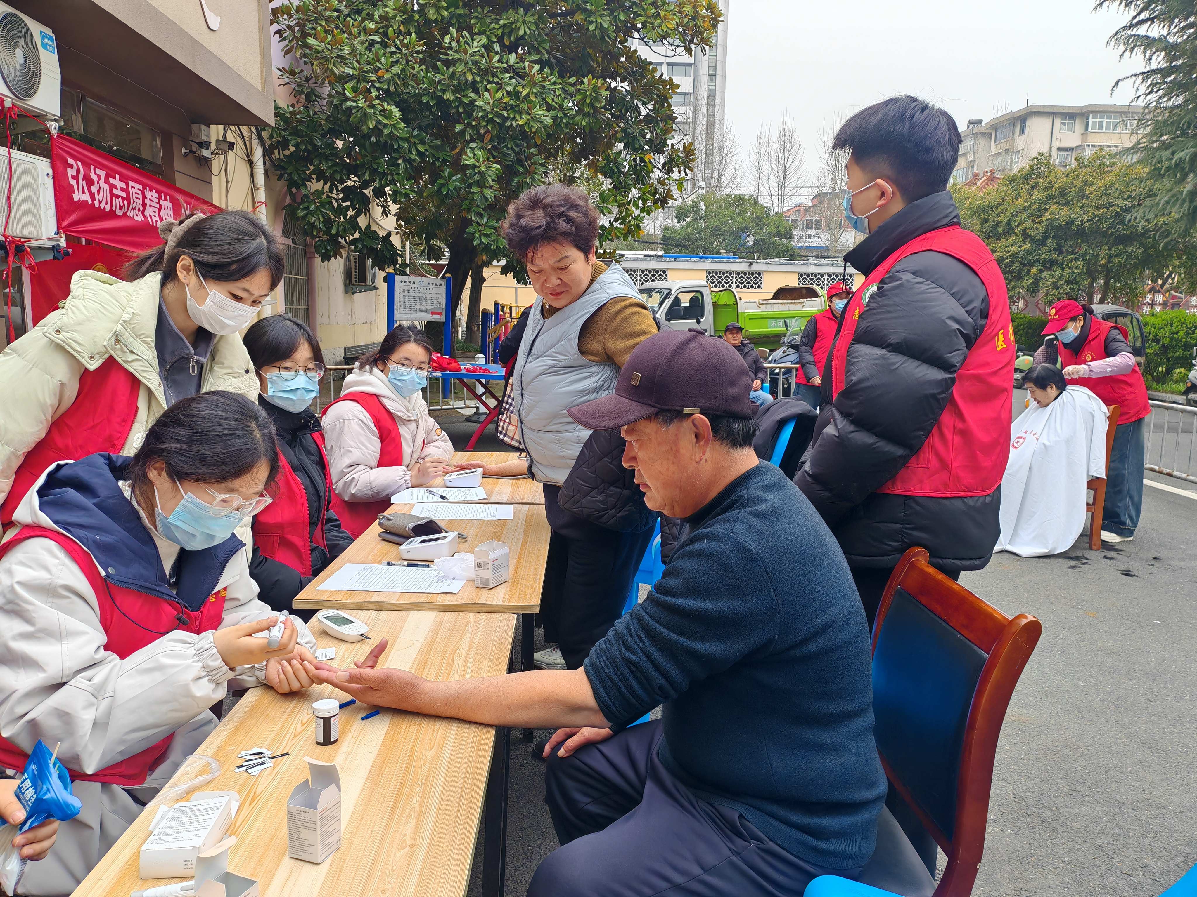 活动现场,红色的横幅格外醒目。志愿者们早早就位,有序搭建服务台。针对社区内部分高龄、腿脚不便的老人,志愿者们还提供了贴心的上门服务。