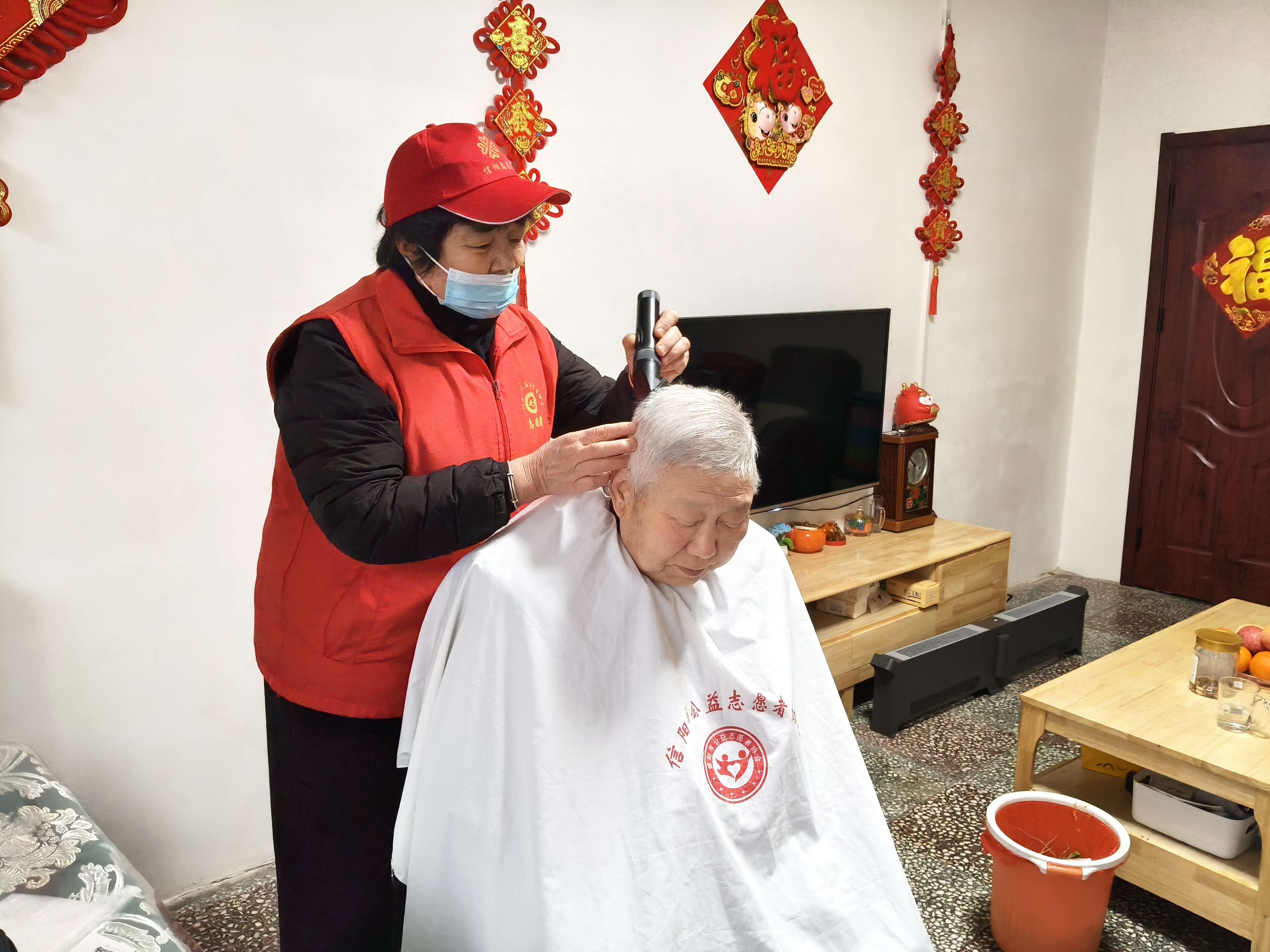 在社区活动中心,理发区的志愿者们手法娴熟,一边为居民修剪头发,一边送上“剃龙头、启新运”的美好祝福。