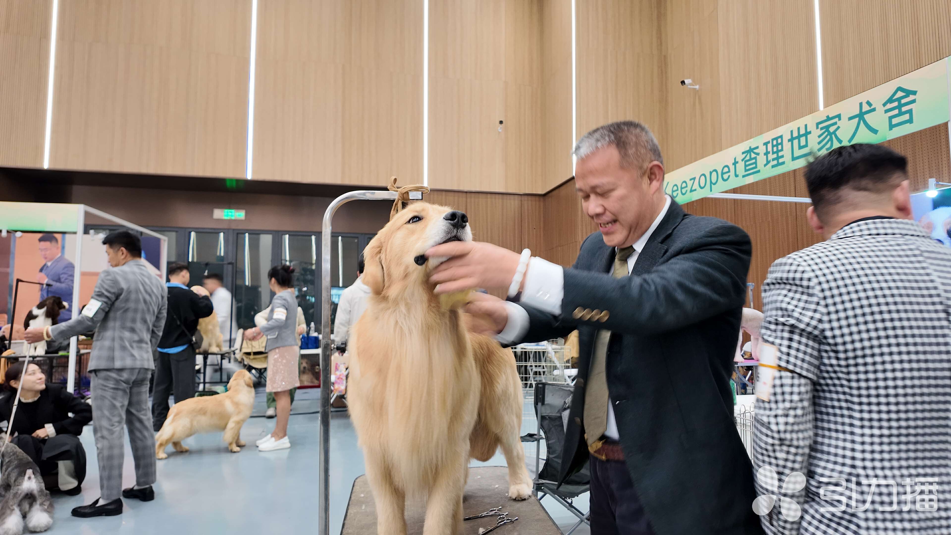 从宁波赶来参赛的朱先生,西装笔挺却有着细腻的心思,上场前亲自给金毛巡回猎犬麦克洗漱、修毛、做造型,“每次洗澡要花2小时,它就像我的孩子,为它付出我很开心。”养狗20多年的他,深刻感受到国内宠物友好氛围的提升,携宠出行有宠物友好酒店、乐园,逛超市有专属休息区,这份便捷让养宠更有幸福感。