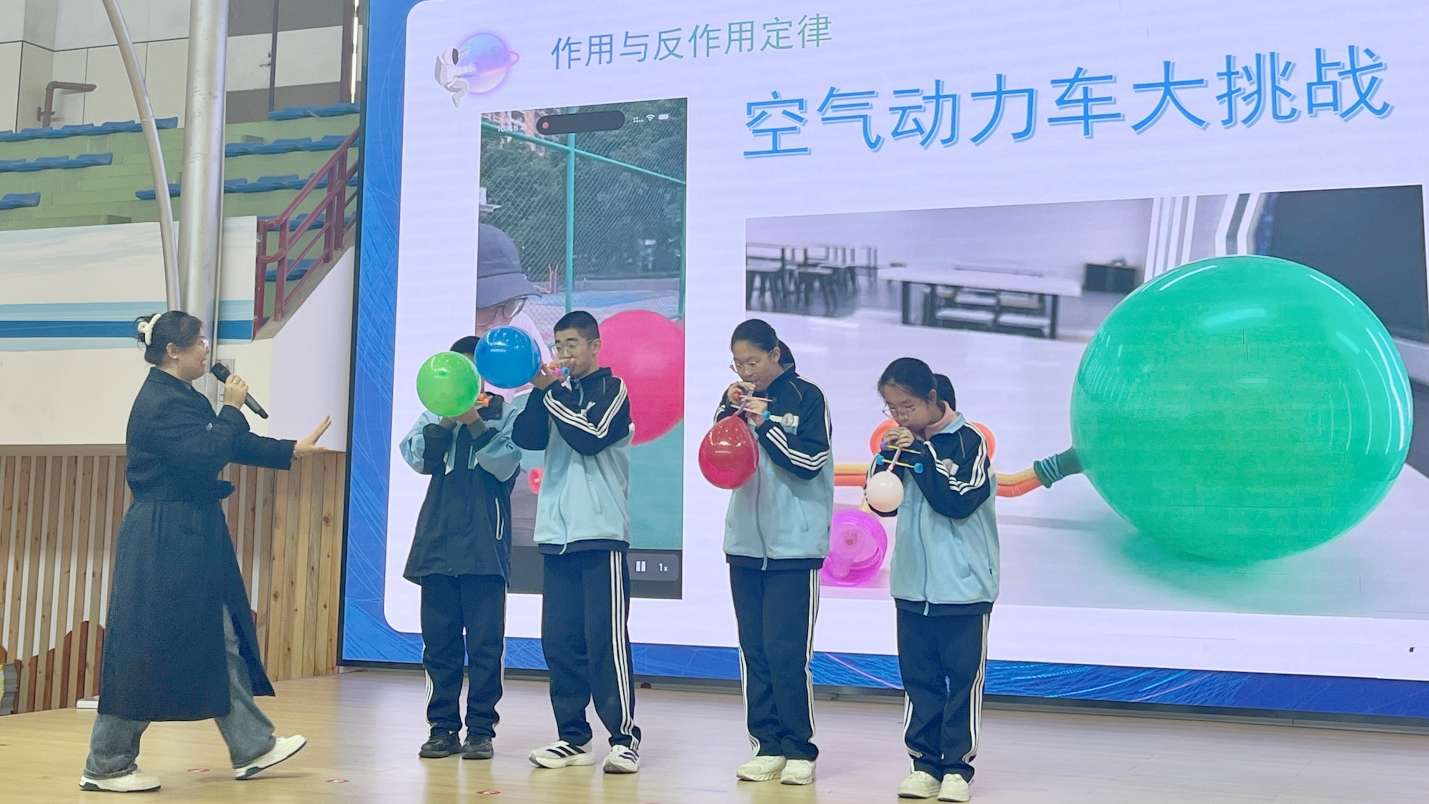 除科普知识问答与趣味十足的竹蜻蜓比赛外,现场的科学实验课、科普大篷车展品更是点燃了学子们的探索热情。科学老师通过趣味演示、互动讲解,深入浅出地传递科普知识;科普大篷车的各类新奇科技展品,引得学子们流连忘返,大家围在展品旁认真观察、轻声讨论,眼神中满是对未知世界的好奇。