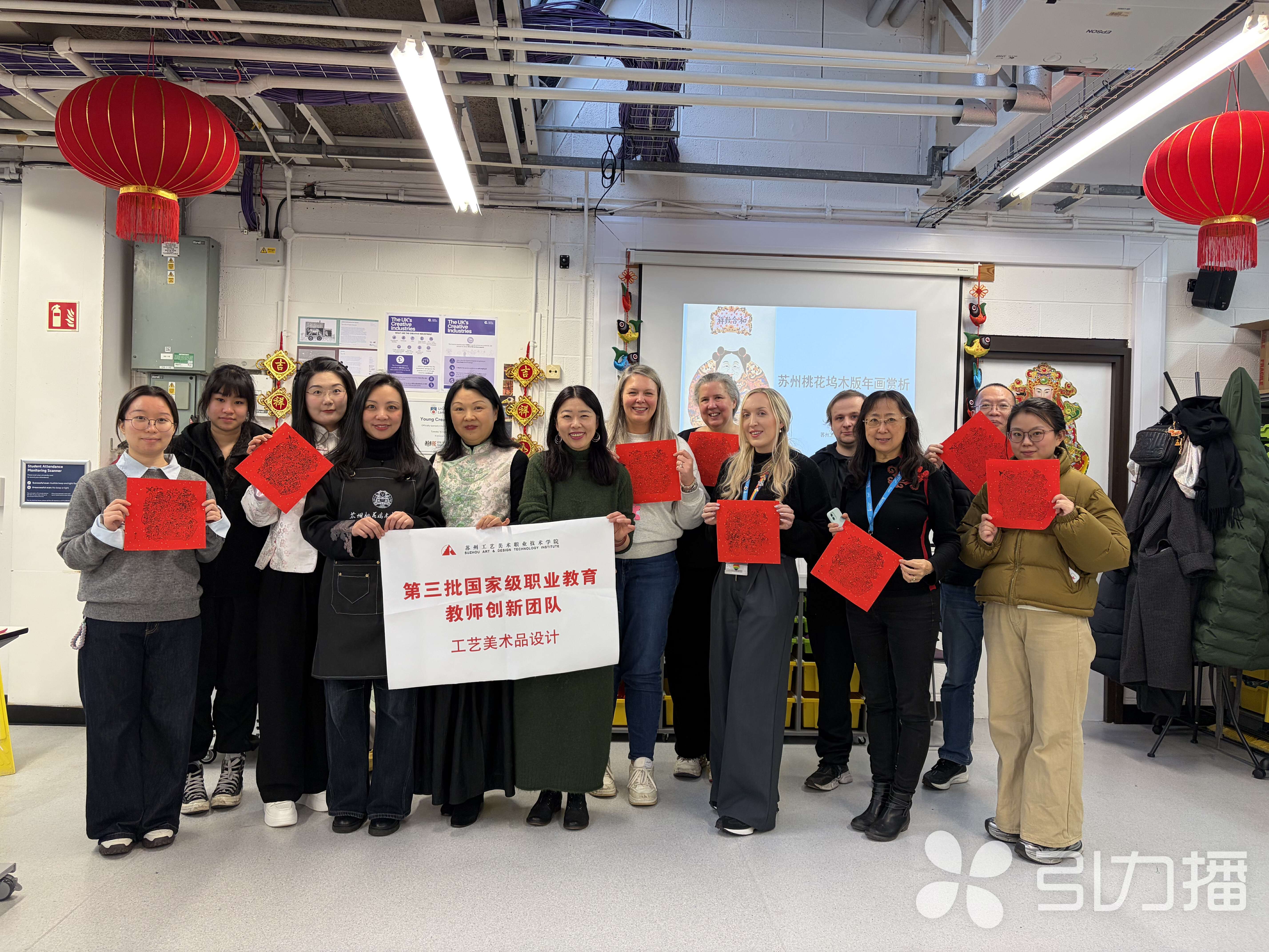 近日,苏州工艺美术职业技术学院手工艺术学院年画方向骨干教师朱蕾,携手江苏省非遗代表性传承人、苏绣艺术家府向红,带着桃花坞木版年画与苏绣两项国家级非遗技艺,走进英国曼彻斯特、普雷斯顿、利物浦、伦敦四座城市的大学与博物馆,带来七场沉浸式传统工艺体验活动。当江南的棕刷与银针遇上英伦的校园与展馆,吴地匠心跨越山海,在泰晤士河畔勾勒出东西方文化交融的美好图景,这也是苏工艺“中国传统工艺学堂”项目的又一次国际实践。