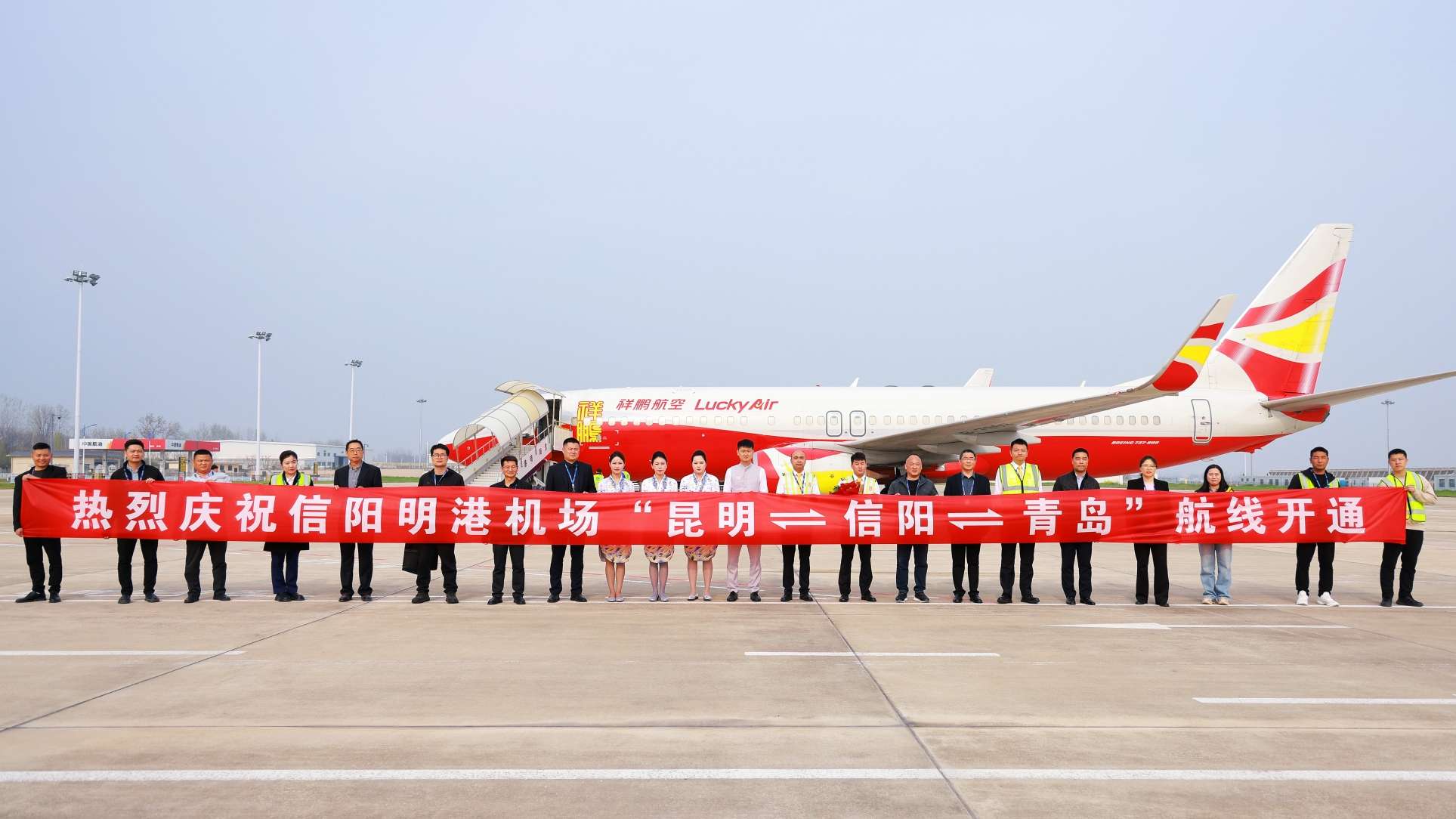 3月31日15时40分,随着一架从昆明长水机场起飞的客机平稳降落在信阳明港机场,标志着“昆明⇌信阳⇌青岛”航线正式开通!