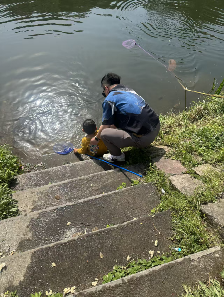 时间回到4月5日下午2时50分许,秦永刚与家人在郝堂村一处鱼塘周边散步休憩,忽然发现惊险一幕:一名儿童为打捞落入水中的渔网,不慎失足滑入鱼塘。因孩子不谙水性,在离岸不足两米的位置便坠入深水区,短短瞬间,整个人便没入水中,挣扎愈发微弱,生命安全岌岌可危。