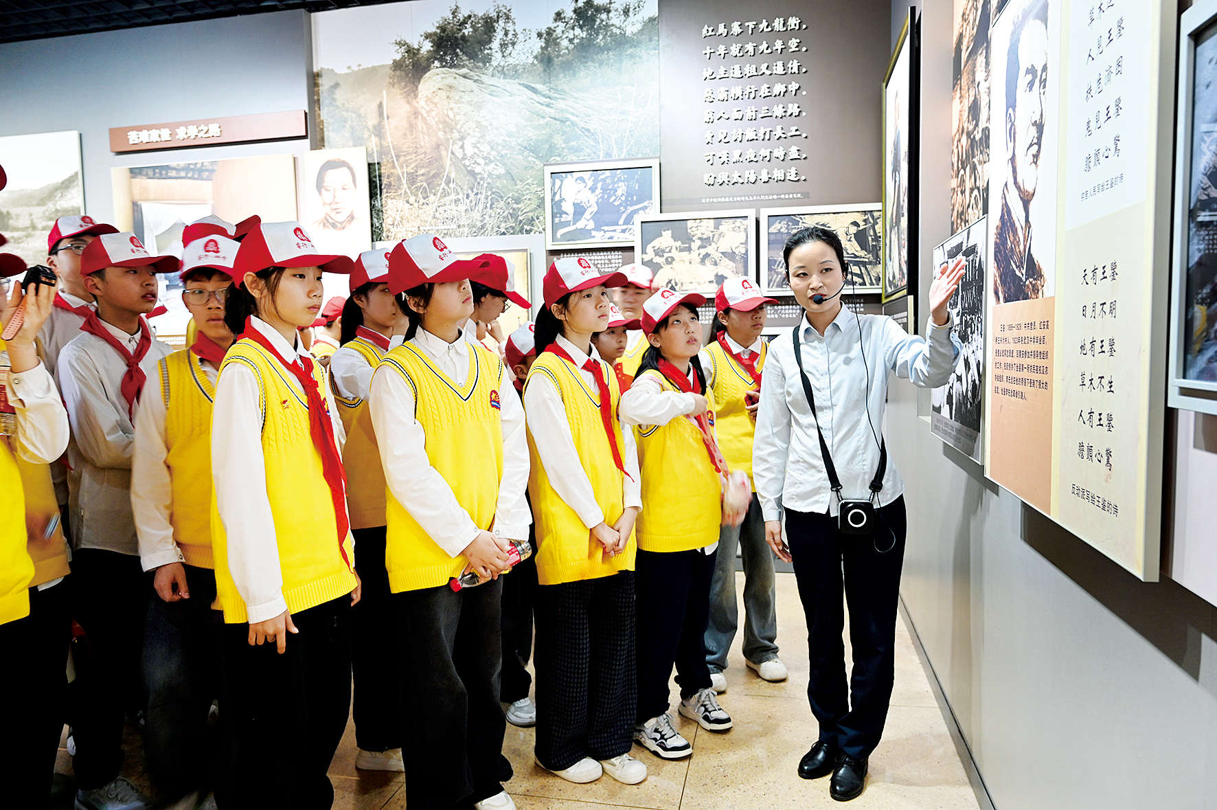 4月10日,信阳市第十三小学组织师生代表赴红安开展红色研学,通过祭奠英烈、聆听革命故事等方式,接受红色教育,赓续红色血脉。图为该校师生代表在湖北红安县李先念故居纪念园参观学习。