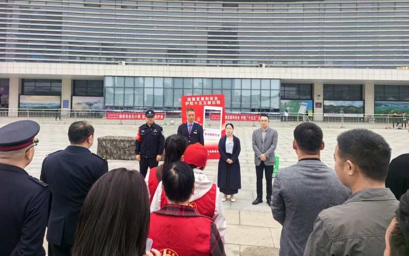 4月15日是全民国家安全教育日,武汉铁路公安处信阳东站派出所联合平桥区城东街道办事处、信阳东站、车站区域事务中心等多家单位,围绕“统筹安全和发展 护航‘十五五’新征程”,开展站前广场集中宣传、校园安全专题宣讲系列活动,普及国家安全及铁路安全知识。