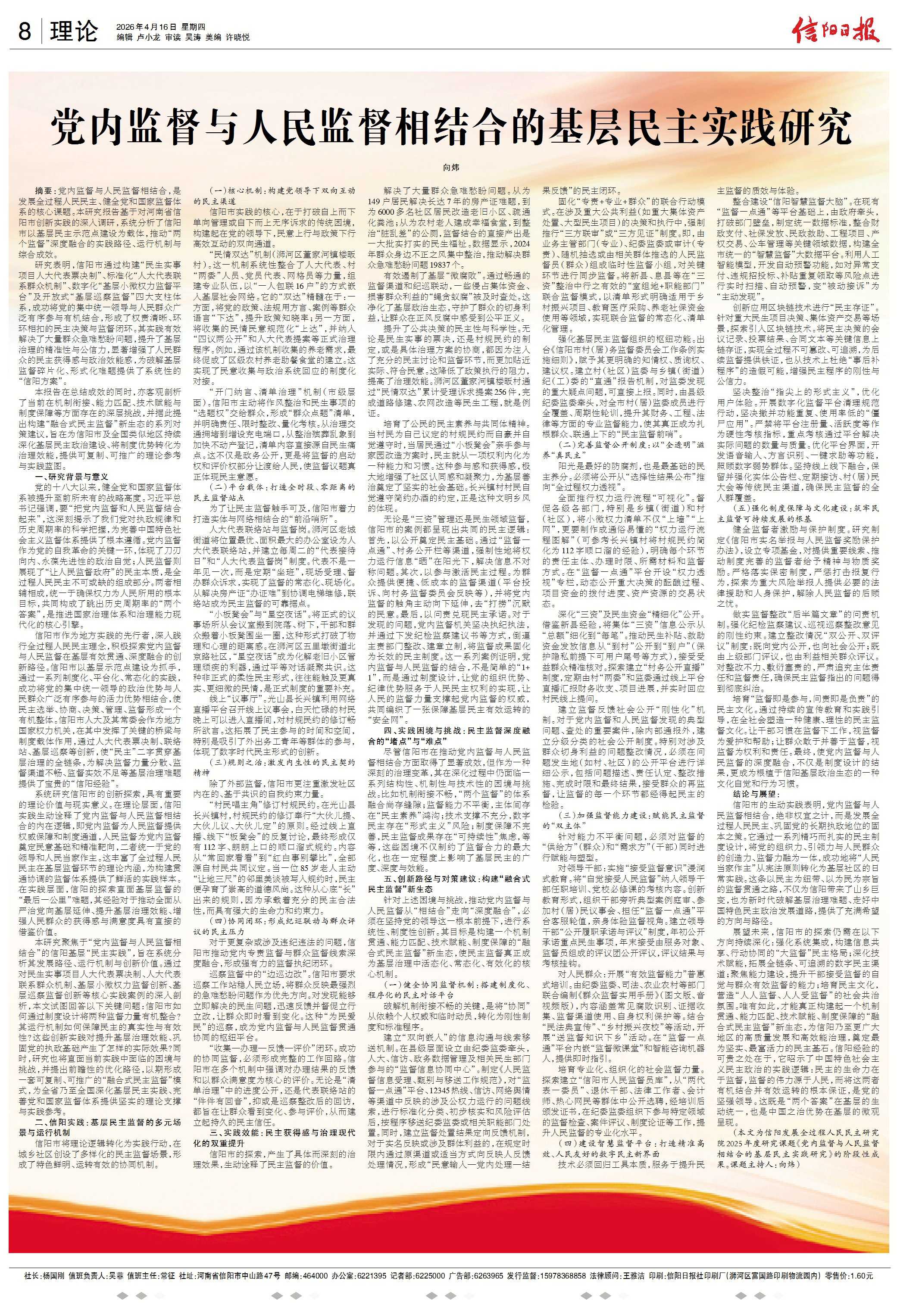 2026年4月16日《信阳日报》