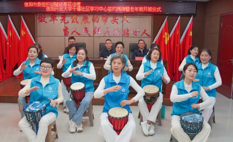 4月15日,羊山新区前进街道千禧社区热闹非凡,信阳开放大学千禧社区学习中心签约揭牌暨老年班开班仪式在这里举行。信阳开放大学和千禧社区相关负责同志签订合作办学协议并为学习中心揭牌。