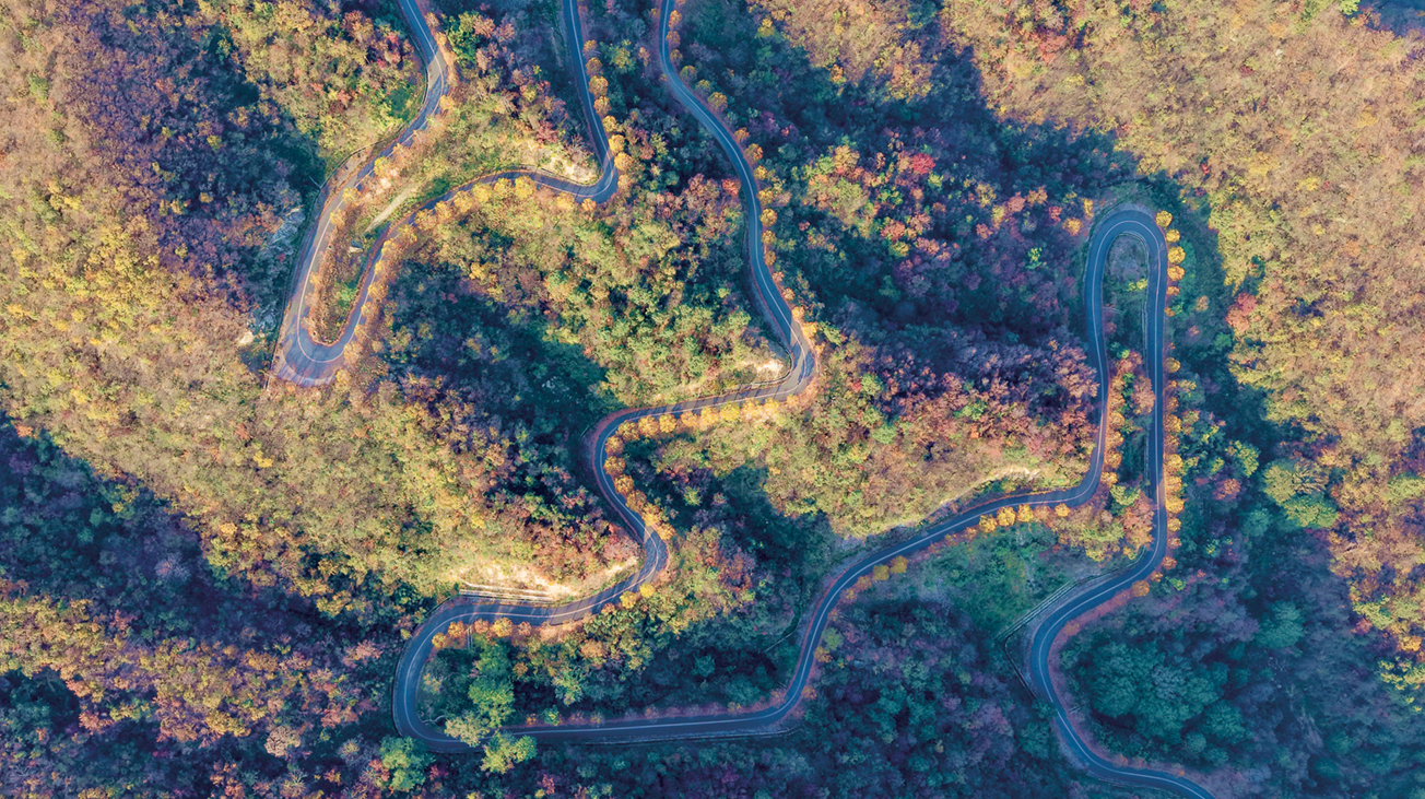 龙袍山披“五彩华服”,蜿蜒山路如巨幅油画